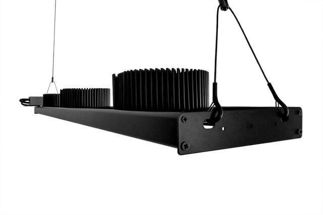 Easy-to-use rail system provides a versatile way to mount and hang lights over a grow space.